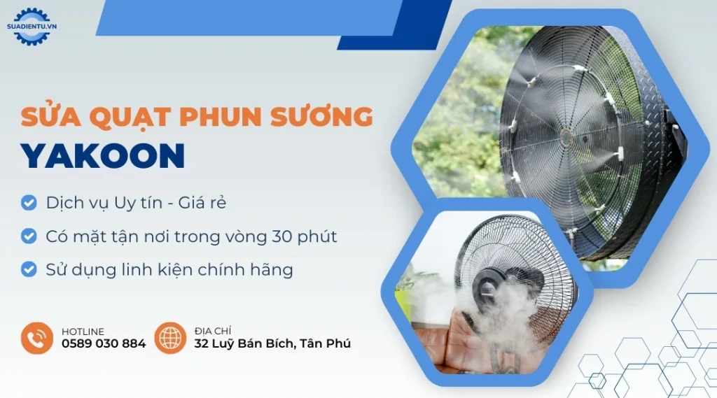 Bên cạnh sửa quạt phun sương Yakoon tại TPHCM, Suadientu.vn còn cung cấp dịch vụ bảo trì, vệ sinh quạt phun sương để đảm bảo thiết bị luôn hoạt động tốt. Liên hệ ngay HOTLINE 0589 030 884 để được tư vấn chi tiết và đặt lịch sửa chữa nhanh chóng!
