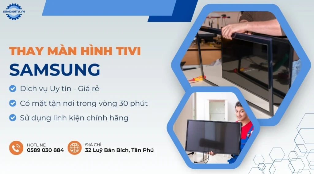 Màn hình tivi Samsung gặp sự cố? Đừng lo lắng, Trung tâm Sửa Điện Tử cung cấp dịch vụ thay màn hình tivi Samsung chuyên sâu với quy trình bài bản và chuyên nghiệp. Dịch vụ nhanh chóng, hỗ trợ tận tình giúp bạn yên tâm sử dụng. Liên hệ ngay HOTLINE 0589 030 884 để được hỗ trợ kịp thời.